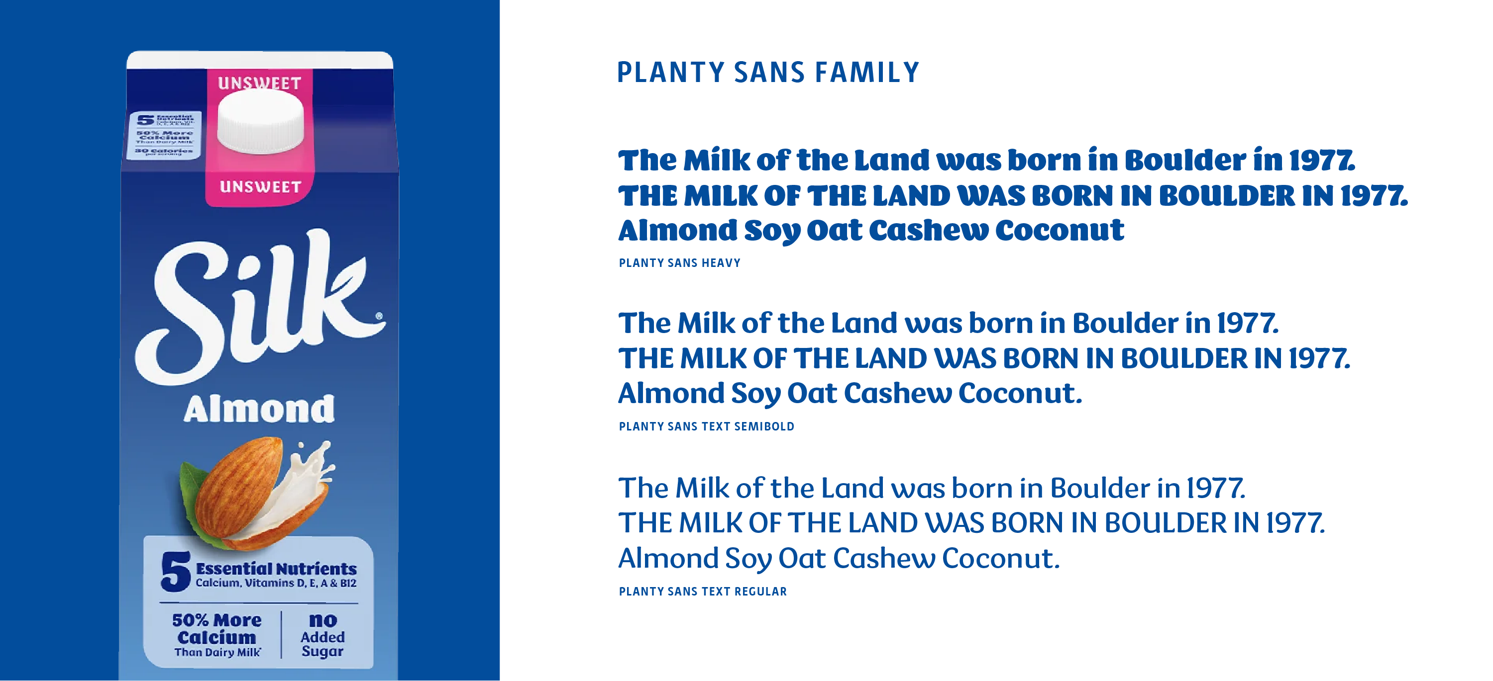 Planty Sans was developed as part of Silk’s brand refresh, in collaboration with Sudtipos, goDutch studio, and the Danone Brand Design team.